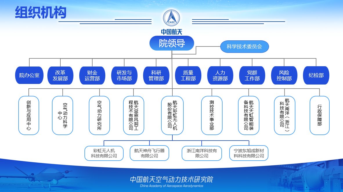 中國航天空氣動力技術研究院(簡稱:航天十一院)隸屬于中國航天科技集團有限公司,于1956年在錢學森先生倡導下創建,是我國第一個大型航天空氣動力研究與試驗基地。 經過60余年的發展,逐步形成了空氣動力學、特種飛行器、航天技術應用產業三大主業協同并進的新發展格局。